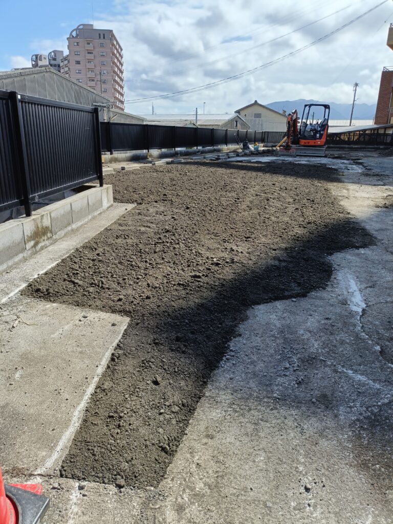 駐車場の砕石を草が生えにくいセメント改良にしました。